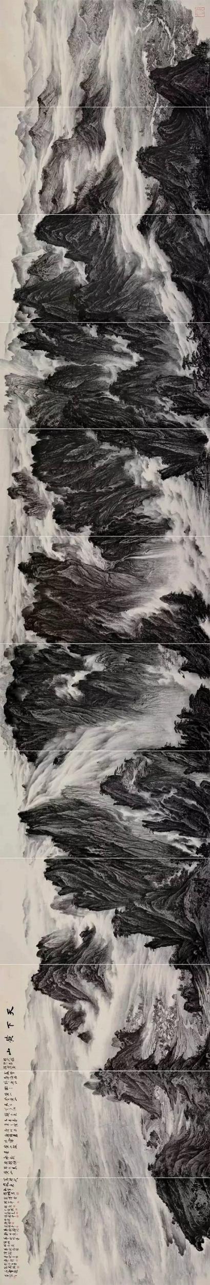 2015年夏,安徽合肥。一幅高2·45米、長14·8米的中國水墨全景式巨制《天下黃山》轟然問世,它以新穎深刻的立意,恢弘寬大的畫面,撲面而來的氣勢,酣暢淋漓的筆墨,在畫界和社會上引起不小的震撼與反響。