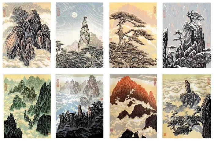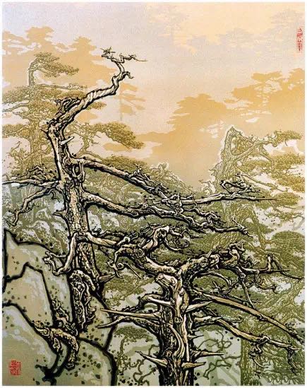 此后的五十來年,師松齡情系黃山,情系黃山松,醉心于徽派版畫研究與創作。他摒棄喧囂,總是在黃山的云海青松間對景寫生。胸有丘壑,筆下的松樹千姿百態。1997年,他運用版畫設計的《黃山》小版張郵票轟動一時。