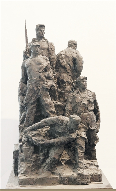 山的意象在展覽中反復呈現,體現著創作者對雕塑語言的思考,成為民族精神的生動隱喻。霍波洋《狼牙山五壯士》將5位英雄與山巖熔鑄一體,喻示英烈精神永存;郭繼鋒《崢嶸歲月》以山巒般的構圖塑造革命先輩,衣紋如山脈起伏,肌理似風蝕黃土,謳歌革命者的堅貞不屈;王立偉《山魂》更將東北抗聯戰士與山體結構完美融合,詮釋著“人民即山脊”的內涵。