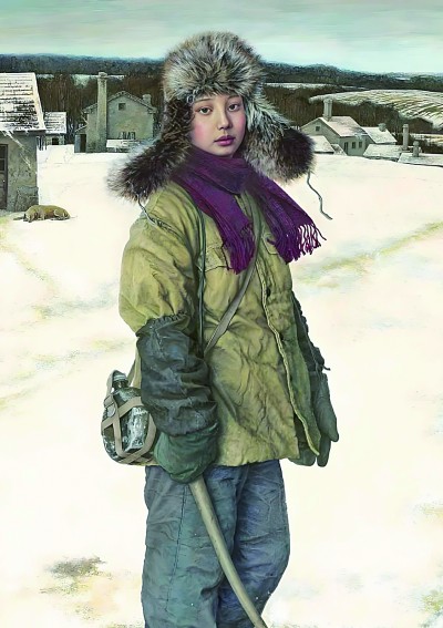 藝術(shù)家劉孔喜一直致力于坦培拉繪畫的創(chuàng)作和教學(xué)工作,他在實(shí)踐中嘗試通過(guò)技法的改良,簡(jiǎn)化坦培拉繪畫的創(chuàng)作步驟。他摒棄了以素描方式打底,而是僅以簡(jiǎn)單的墨線勾勒物象輪廓,再運(yùn)用坦培拉顏料以類似油畫的色彩堆疊方式直接塑造物象的體積與光影,僅需要在作畫過(guò)程中的數(shù)個(gè)節(jié)點(diǎn)進(jìn)行整體罩染。這樣的繪畫方式大約可將罩染的層數(shù)縮減至5到8層,提高了作畫效率。在作品完成后也可根據(jù)畫面的需要涂覆上光油,以達(dá)到與傳統(tǒng)坦培拉畫法一樣的效果。如劉孔喜的作品“青春紀(jì)事系列”(圖②)便運(yùn)用了此繪畫技法,畫面中典型的北方雪景與女性形象給人以靜穆、質(zhì)樸的美感。改良后的顏料堆疊方式使得畫面更加厚重,細(xì)節(jié)處的溫潤(rùn)光澤恰如其分地傳遞出畫中人物豐富的內(nèi)心世界。