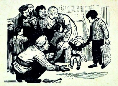 1937年盧溝橋事變、全面抗戰爆發后,抗戰版畫在戰火的洗禮中走向成熟,藝術形式建構發生了質的飛躍。這種轉變主要體現在三個方面:其一,構圖從早期的大頭像、片段式場景發展為完整的敘事性畫面;其二,人物造型從概念化、符號化走向準確生動;其三,刀法運用從粗放單一發展為豐富細膩。在這一轉型中,延安魯藝發揮了關鍵作用,王式廓等延安魯藝的美術老師推行的素描訓練,顯著提升了解放區版畫創作者的造型能力。