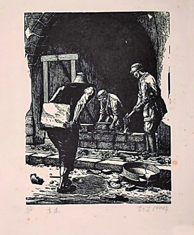 除了直接表現戰斗的作品,如荒煙的《末一顆子彈》(1943)展現中國軍人的頑強抗戰、視死如歸,更多創作者選擇將目光投向戰爭時期的社會生活與人性深度。李少言的《重建》(1942)聚焦日軍掃蕩后的廢墟,通過八路軍幫助群眾蓋房的場景,展現“毀滅中孕育希望”的堅忍精神;焦心河的《丈夫在前線殺敵妻子在后方生產》(1938)則從后方百姓的角度,將小家命運與國家民族存亡緊密相連,詮釋了全民抗戰的意義。這些作品足以證明,抗戰版畫的民族精神不僅體現于沖鋒陷陣的英勇,更蘊含于苦難中的堅守、廢墟上的重建、平凡中的奉獻,內涵的深化使其具備了“史詩化”的精神品格。