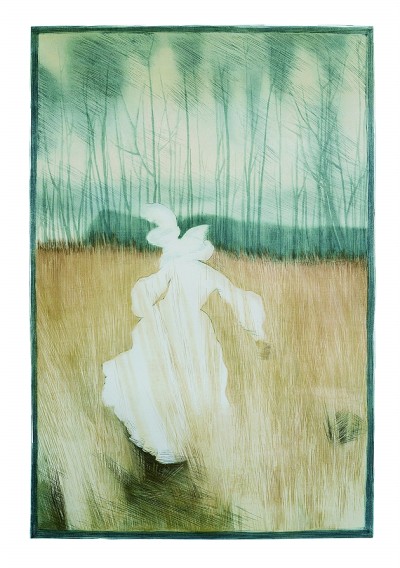 將水印木刻技藝運(yùn)用于繪本創(chuàng)作,其一大亮點(diǎn)在于為畫面帶來豐富的質(zhì)感變化。將水性顏料涂于刻制好的木板之上,再覆蓋宣紙進(jìn)行印制,是水印木刻的基本技術(shù)流程。雖然在木板上刻制的圖案有明確而清晰的輪廓,但水、顏料與宣紙三者的“互動”卻有著諸多不確定性,是極難把控的變量,同時(shí)也為畫面帶來千變?nèi)f化的藝術(shù)效果。而要靈活掌握這種自然、隨機(jī)的變化,使其契合繪本的敘事表現(xiàn),則有賴于創(chuàng)作者對水印木刻技藝的深入理解與純熟運(yùn)用。