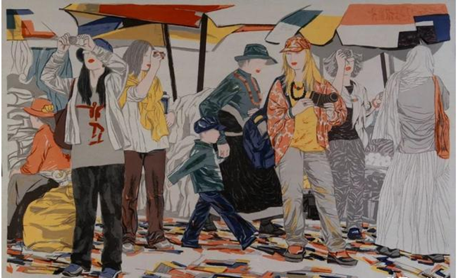 去年江蘇省委宣傳部下面的一個(gè)文投公司,跟全國部分版畫家合作,搞了兩個(gè)品牌的展覽。展標(biāo)分別為“青春飛揚(yáng)”和“桃花盛開”,我是兩個(gè)展覽的評(píng)委。“青春飛揚(yáng)”已經(jīng)舉辦了兩期,今年9月份我們?cè)谀暇?duì)第三期展覽作品進(jìn)行評(píng)選。組委會(huì)選擇國內(nèi)30位青年畫家,評(píng)委觀看投影作品現(xiàn)場(chǎng)投票,很嚴(yán)格、很公平。獲獎(jiǎng)的作品主辦單位收藏,其余的可能就不一定收藏,費(fèi)用也還不低。組委會(huì)邀請(qǐng)30位青年畫家參加畫展的開幕式,并和專家、學(xué)者進(jìn)行學(xué)術(shù)研討。