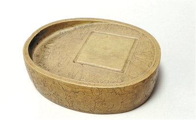 洮河石達摩渡海橢圓硯