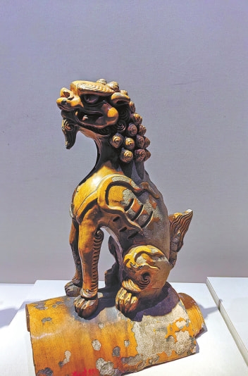 觀眾會奇怪,一系列紫禁城中的建筑構件為什么也會出現在本展區中,如黃琉璃和三彩琉璃的垂獸和套獸、黃琉璃和綠琉璃滴水、太和門黃琉璃正吻,還有康熙款臨清磚和太和門細部彩繪圖等,其實它們都在無聲地告訴我們,故宮作為世界文化遺產,既包括可移動的故宮文物,也包括不可移動的古建筑這兩大部分。從收藏文物到重視古建,是認知上的重大飛躍。