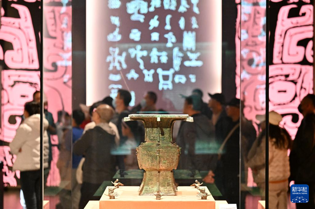 ?11月29日在展覽上拍攝的展出文物亞址銅方尊。